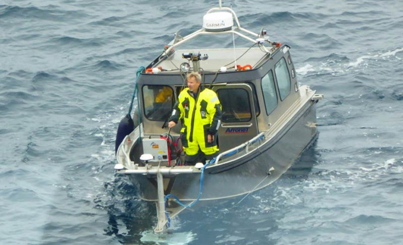 We departed from Barrow according to plan, just after 09:00 local time. The remaining food supplies arrived by boat during the morning. During the entire night, our team responsible for the so called “mid-water sonar” had been busy with calibration procedures.